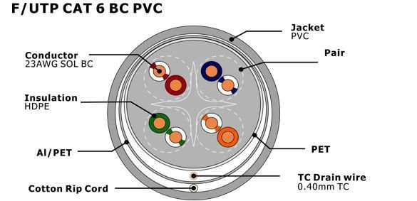 کابل اتریتن CAT6 F/UTP با جاکت PVC 0.57 میلی متری و گواهینامه CPR برای شبکه های LAN داخلی