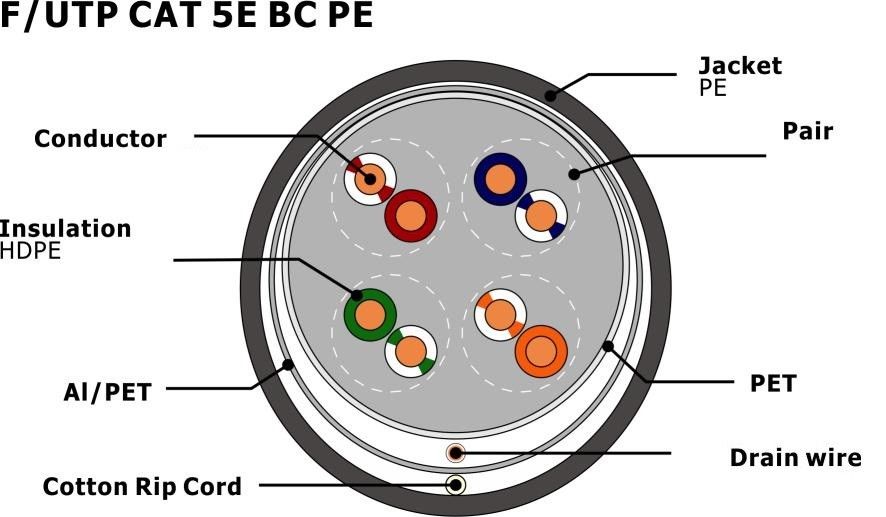 | سپر: | FTP، جفت پیچ خورده محافظ | نام محصول: | F/UTP CAT5E |